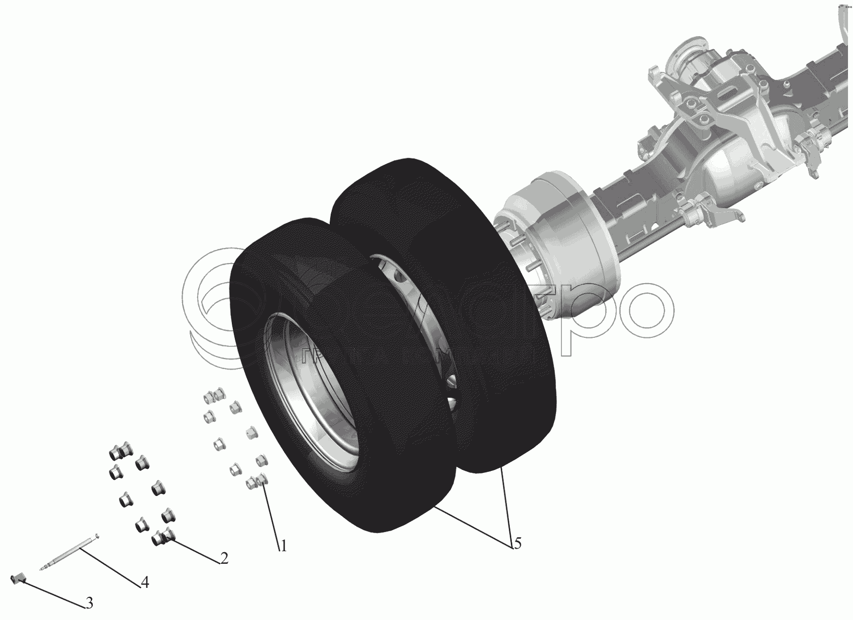 Каталог запасных частей к технике: МАЗ-650119. Установка задних колес