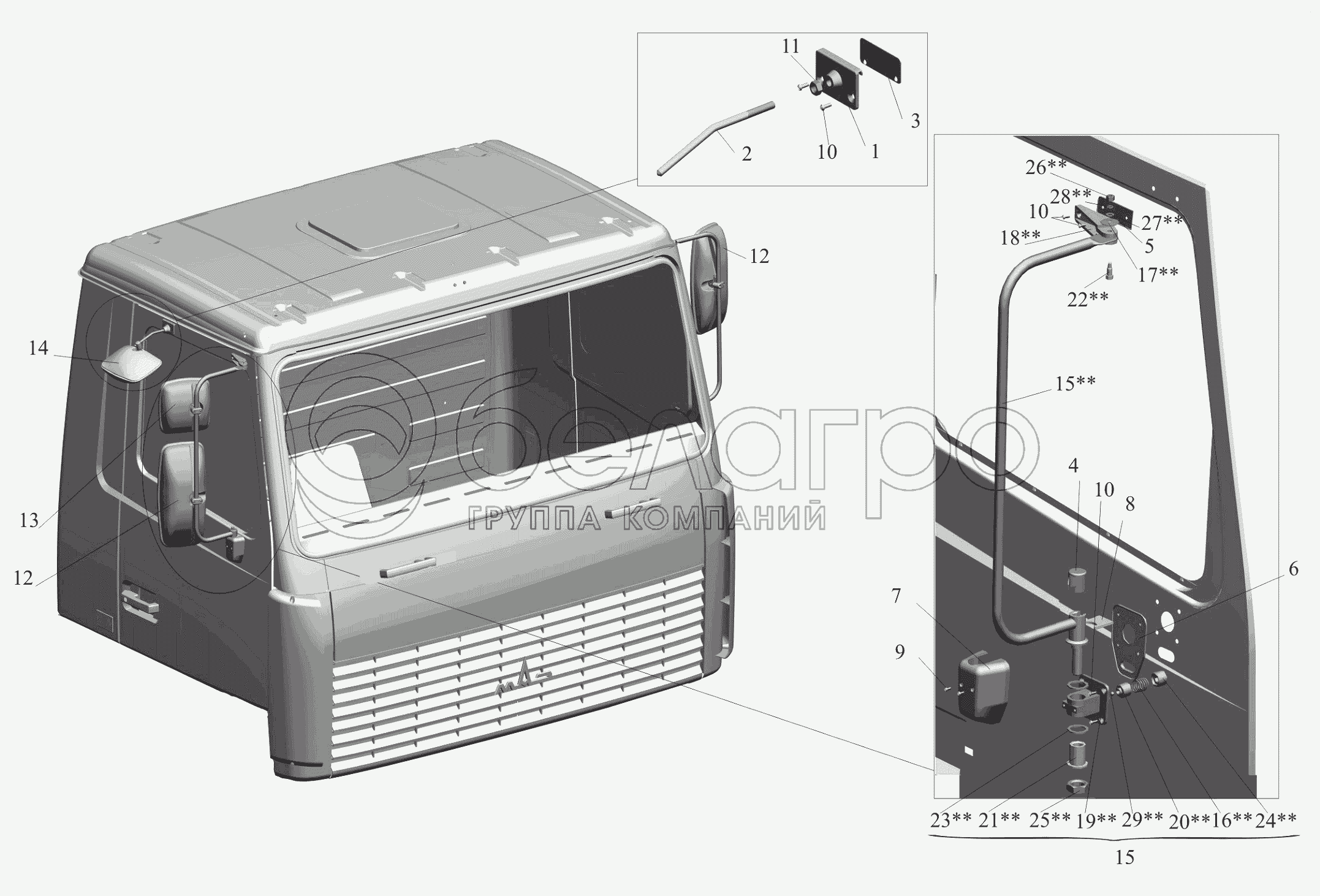 Каталог запасных частей к технике: МАЗ-650119. Установка зеркал 6430-8200005