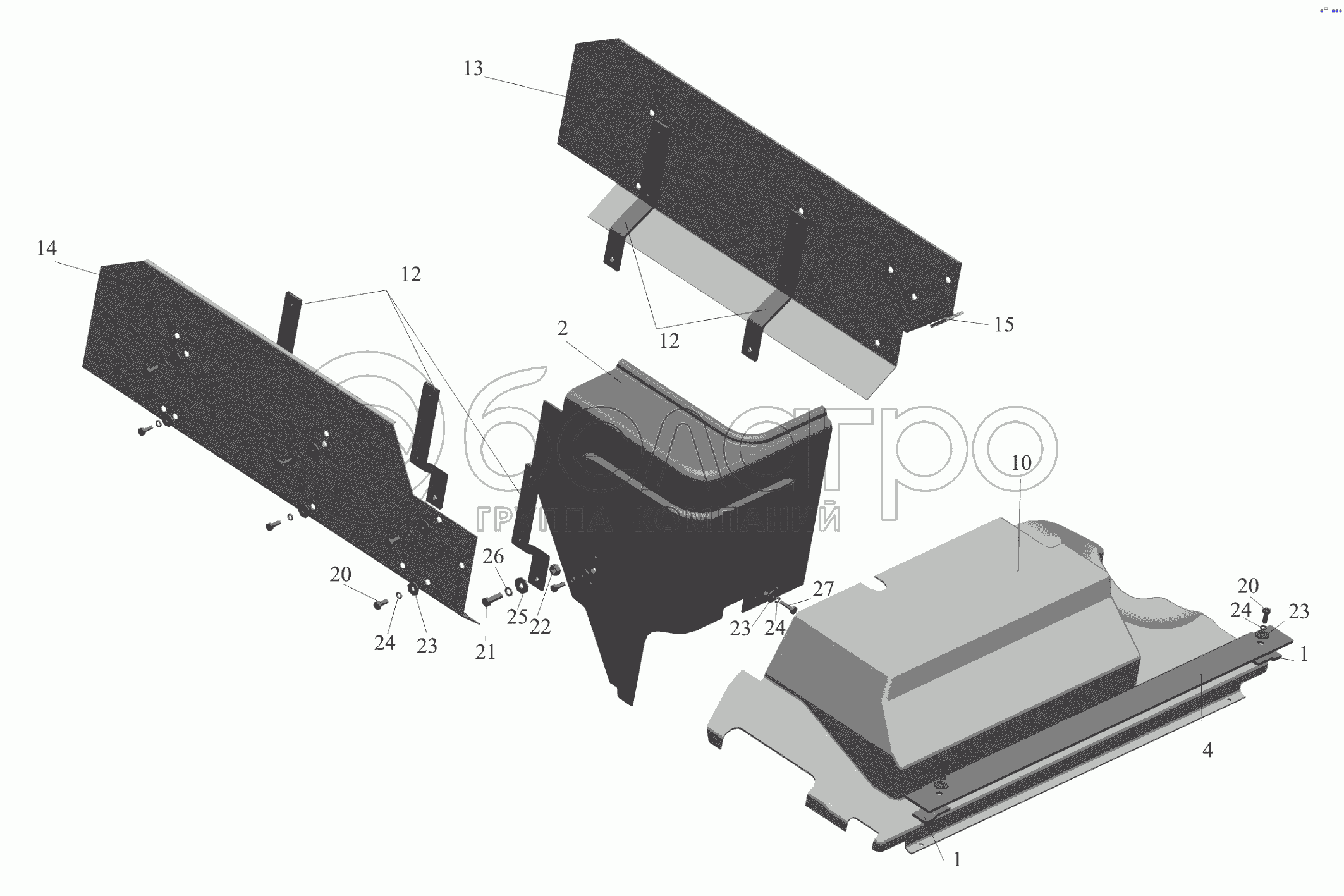 Каталог запасных частей к технике: МАЗ-650119. Установки шумоизоляционных экранов 650119-1061003-006