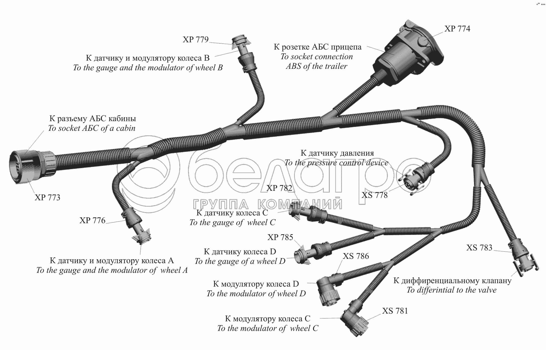 Каталог запасных частей к технике: МАЗ-650119. Жгут АБС по шасси 650119-3724760