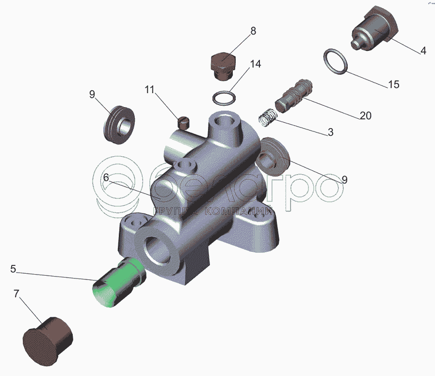 Каталог запасных частей к технике: МАЗ-6501B9. Клапан расхода и давления 5516-8607110