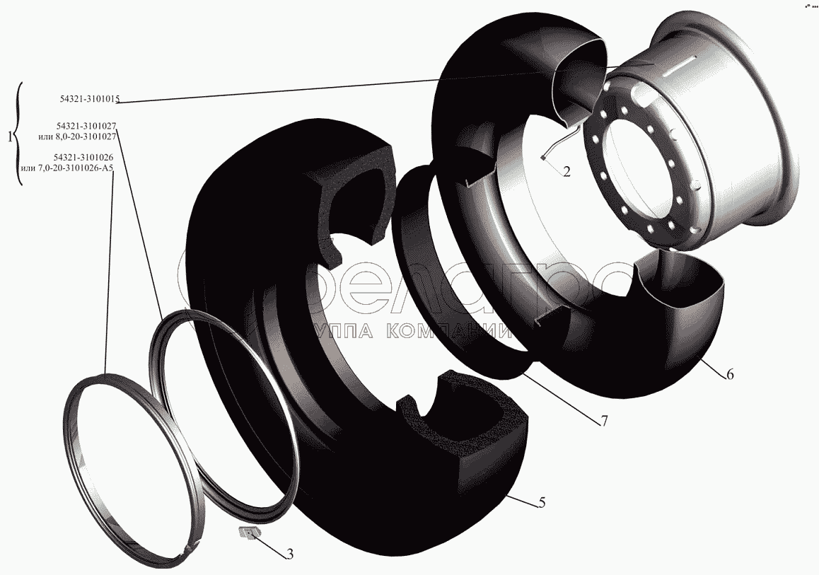 Каталог запасных частей к технике: МАЗ-6501B9. Колесо и шина (54321-3101011)