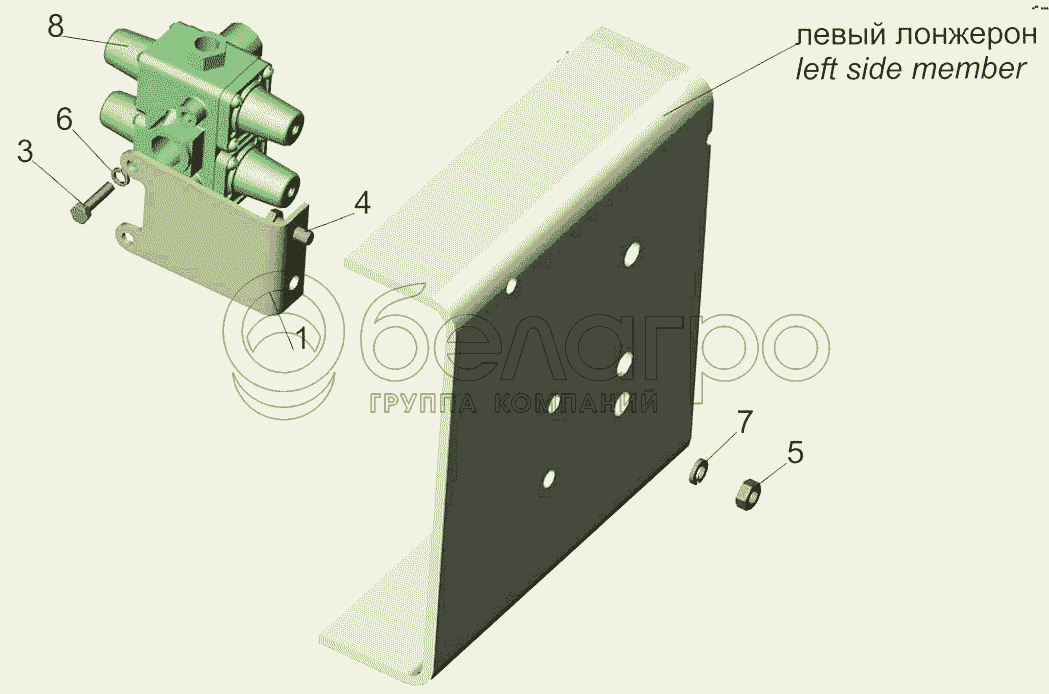 Каталог запасных частей к технике: МАЗ-6501B9. Крепление четырехконтурного клапана 6501АЗ-3515002
