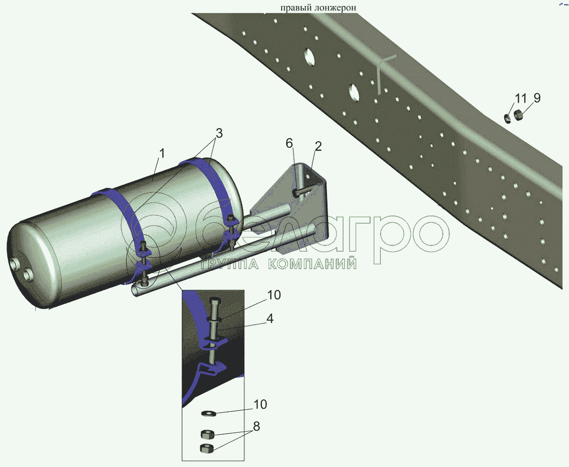 Каталог запасных частей к технике: МАЗ-6501B9. Крепление ресиверов 6501АЗ-3513005