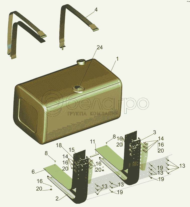Каталог запасных частей к технике: МАЗ-6501B9. Крепление топливного бака 6501В9-1101002-000