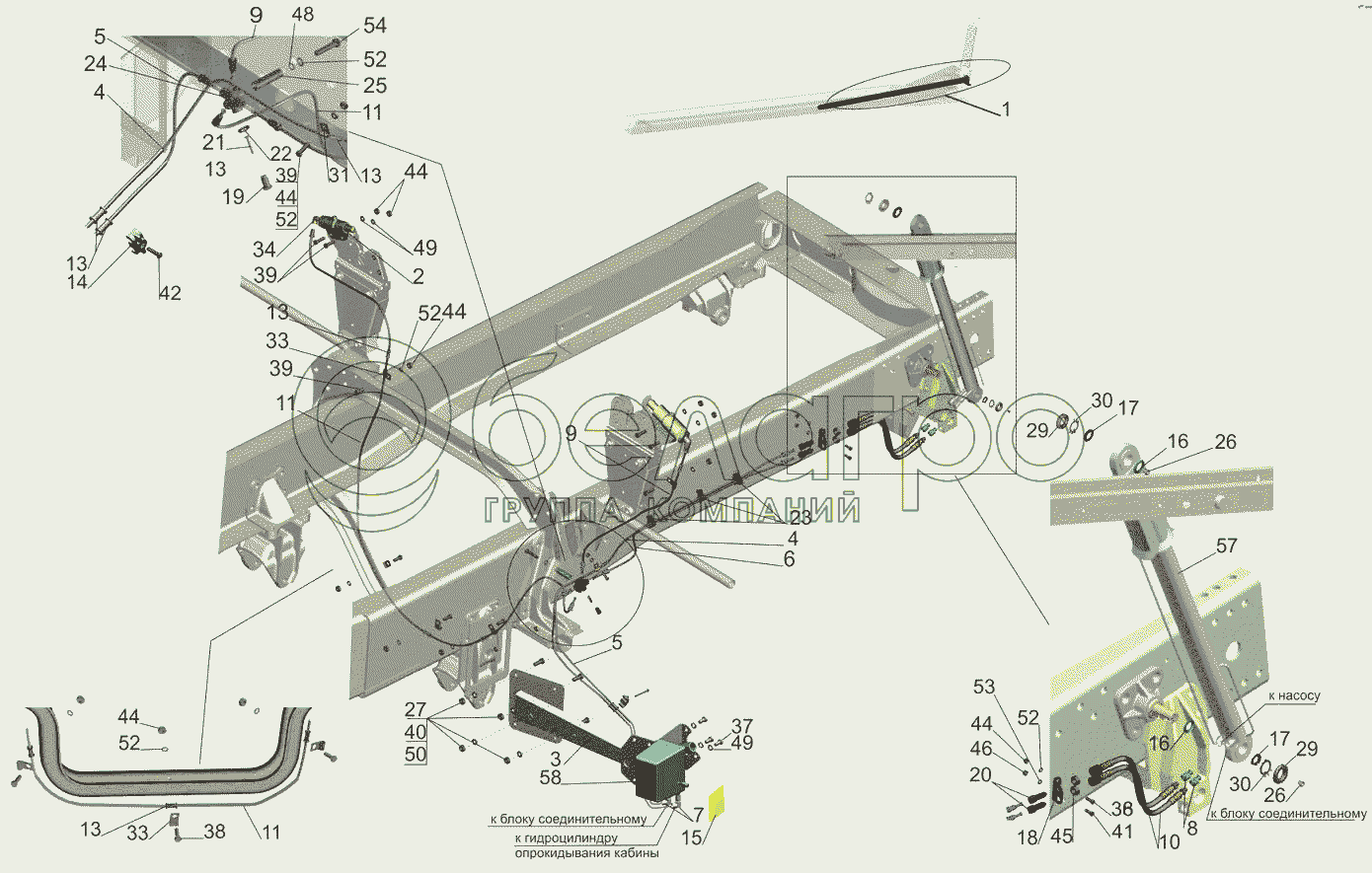 Каталог запасных частей к технике: МАЗ-6501B9. Механизм подъема кабины 6501B9-5000040-030