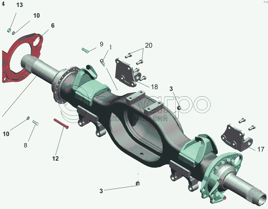 Каталог запасных частей к технике: МАЗ-6501B9. Мост задний. Картер моста 6501-2401010-030