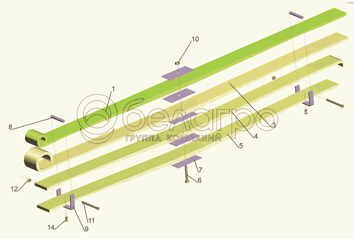 Каталог запасных частей к технике: МАЗ-6501B9. Рессора передняя 6312-2902012-000