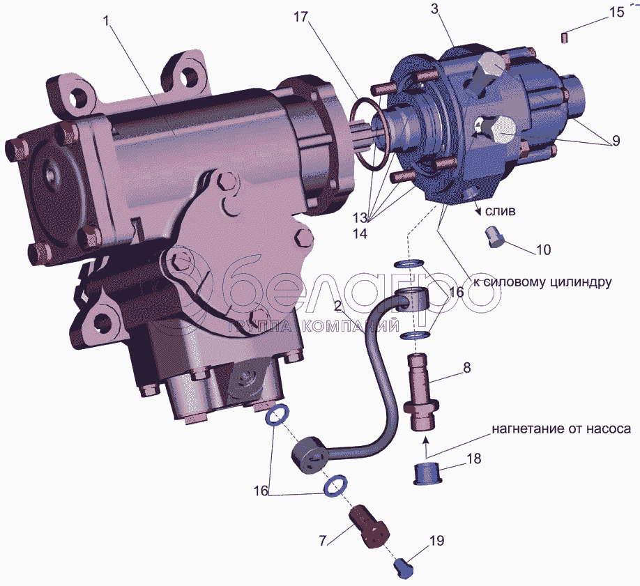 Каталог запасных частей к технике: МАЗ-6501B9. Рулевой механизм с распределителем 64221-3400010-10