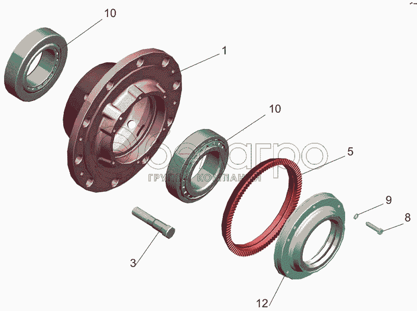 Каталог запасных частей к технике: МАЗ-6501B9. Ступица с крышкой