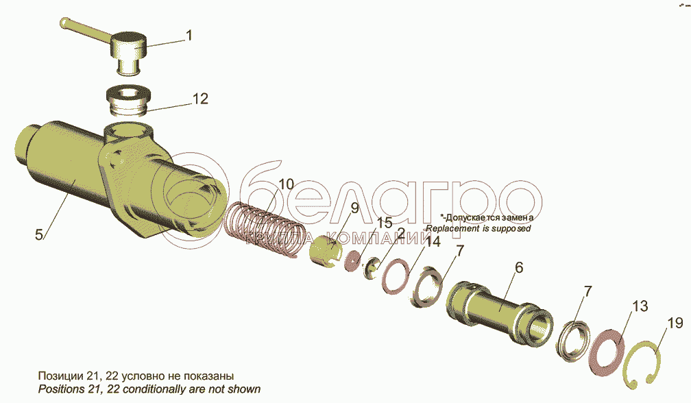Каталог запасных частей к технике: МАЗ-6501B9. Цилиндр подпедальный 6430-1602510