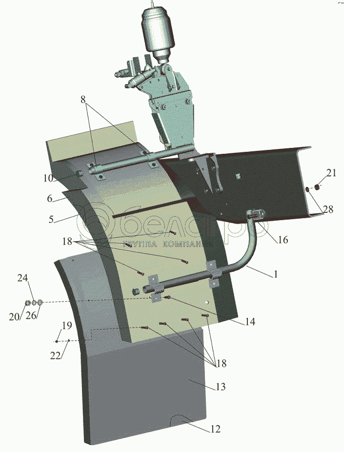 Каталог запасных частей к технике: МАЗ-6501B9. Установка брызговиков передних колес 6501А5-8400030-001