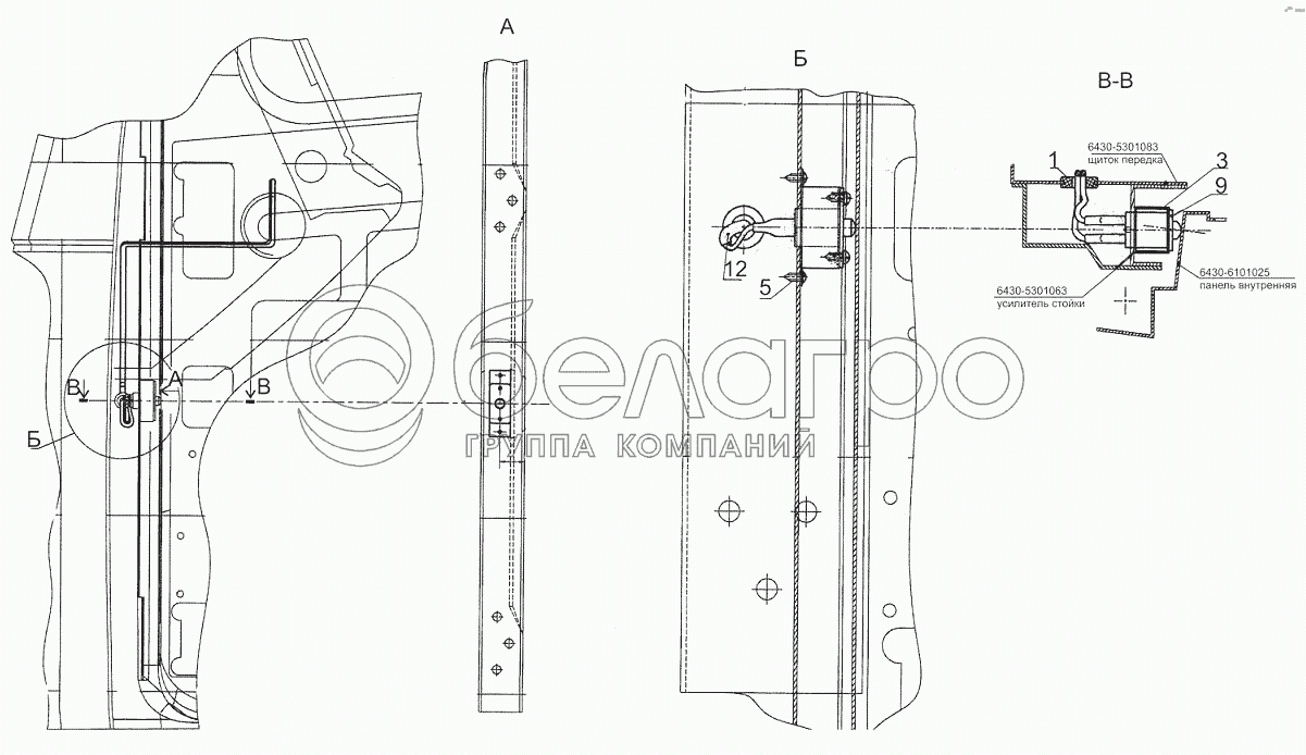 Каталог запасных частей к технике: МАЗ-6501B9. Установка датчика открытой двери 6430-3700218-010