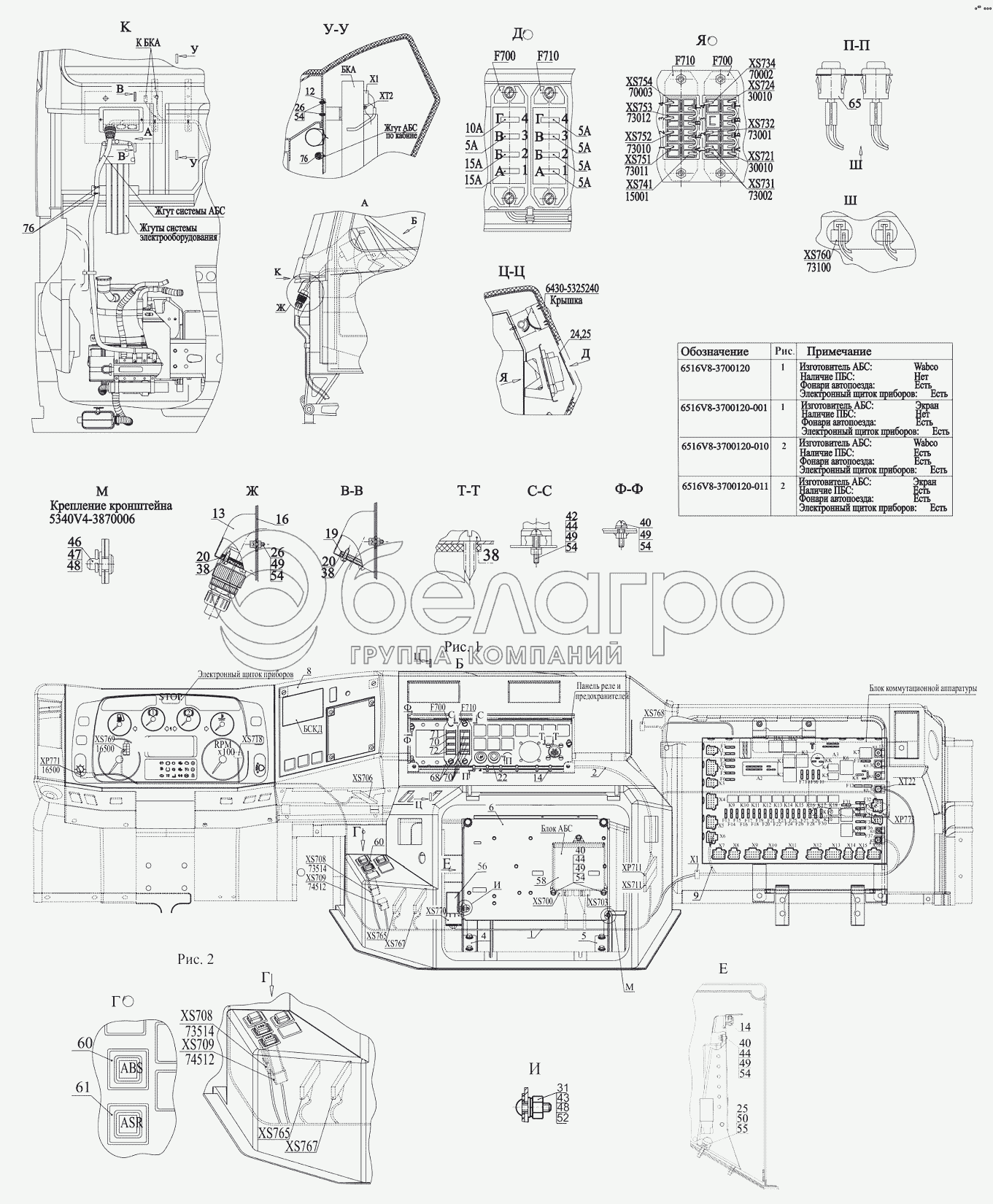 Каталог запасных частей к технике: МАЗ-6501B9. Установка электрооборудования АБС по кабине