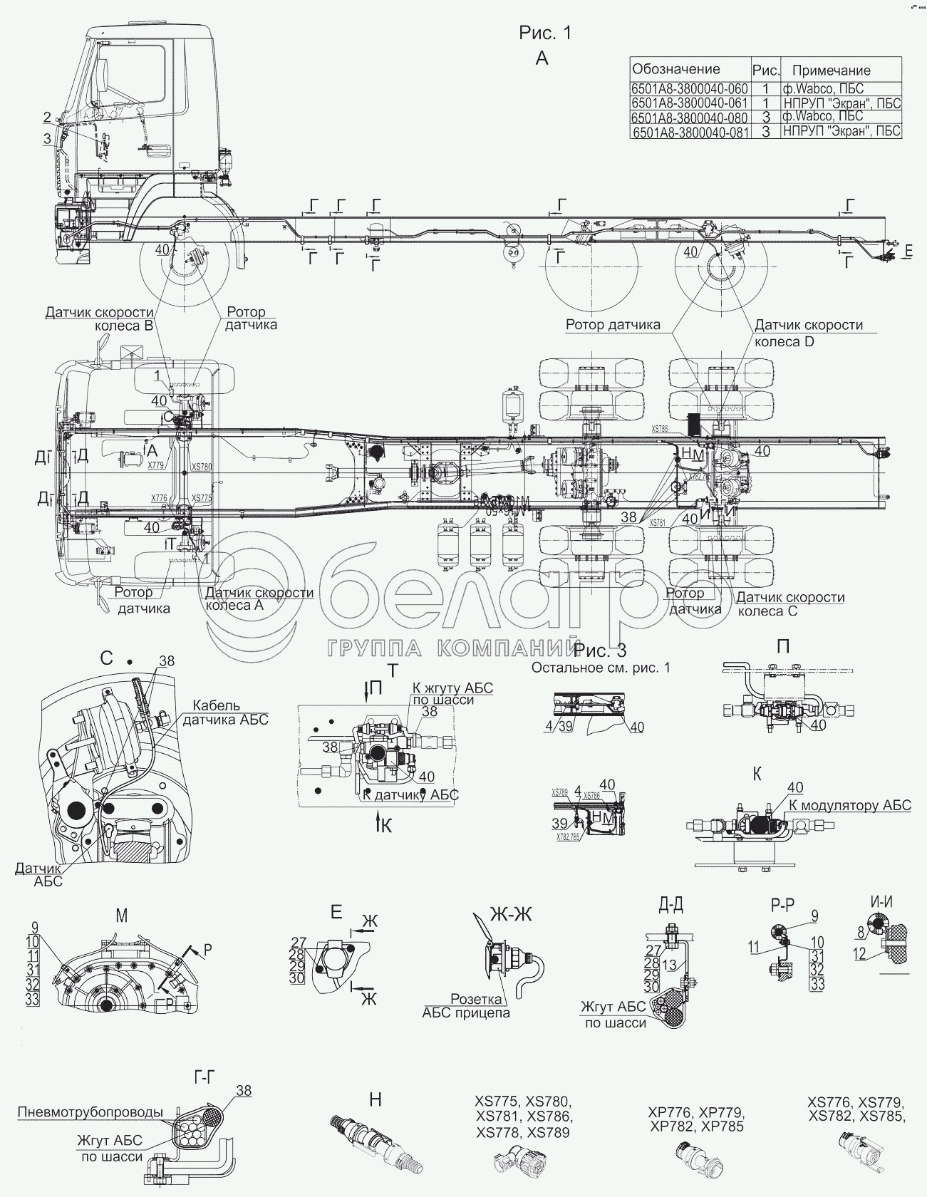 Каталог запасных частей к технике: МАЗ-6501B9. Установка электрооборудования АБС тормозов