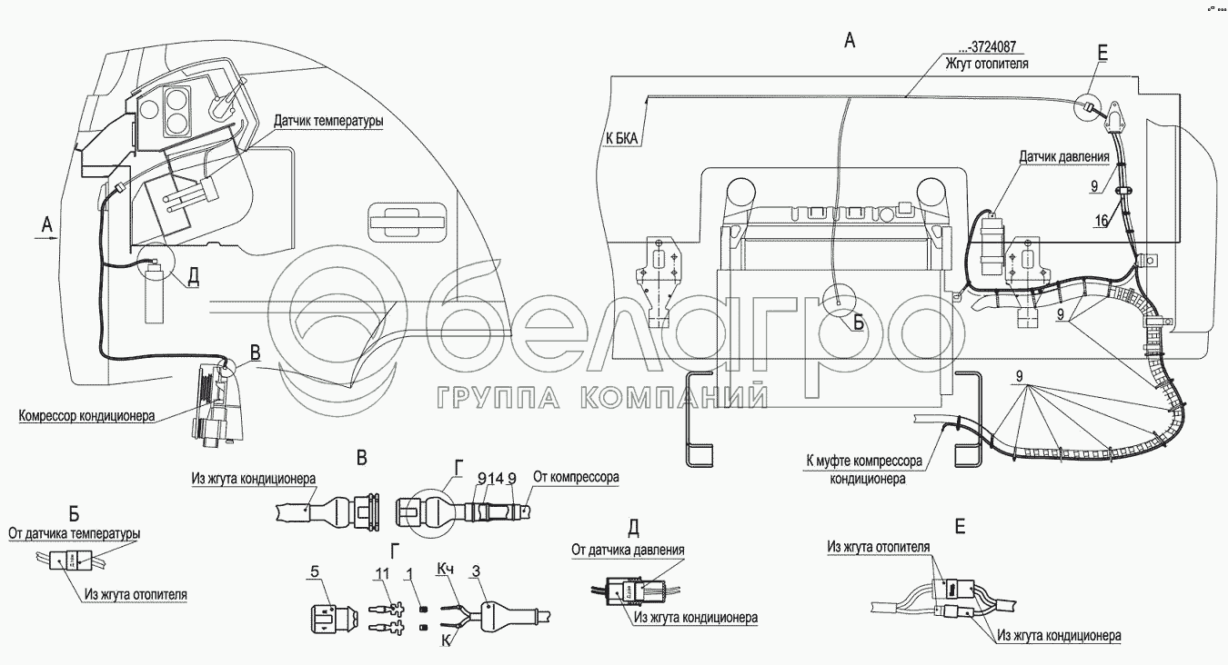 Каталог запасных частей к технике: МАЗ-6501B9. Установка электрооборудования кондиционера 5440A9-3700092