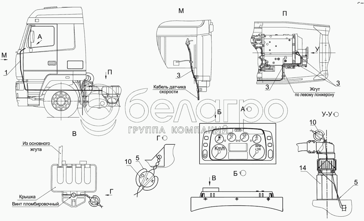 Каталог запасных частей к технике: МАЗ-6501B9. Установка и пломбировка спидометра 6516A9-3800004-020