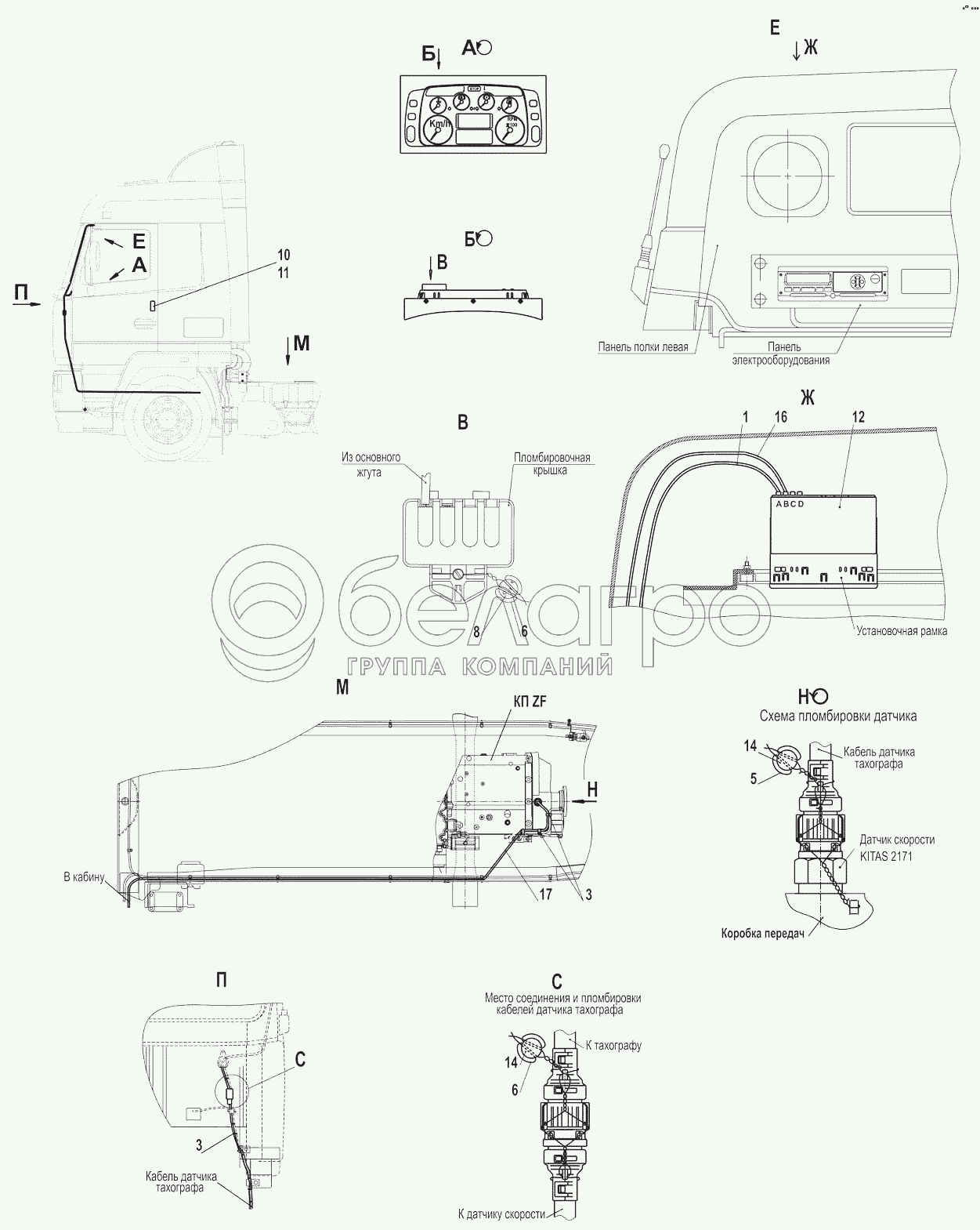 Каталог запасных частей к технике: МАЗ-6501B9. Установка и пломбировка тахографа 5440-3800005