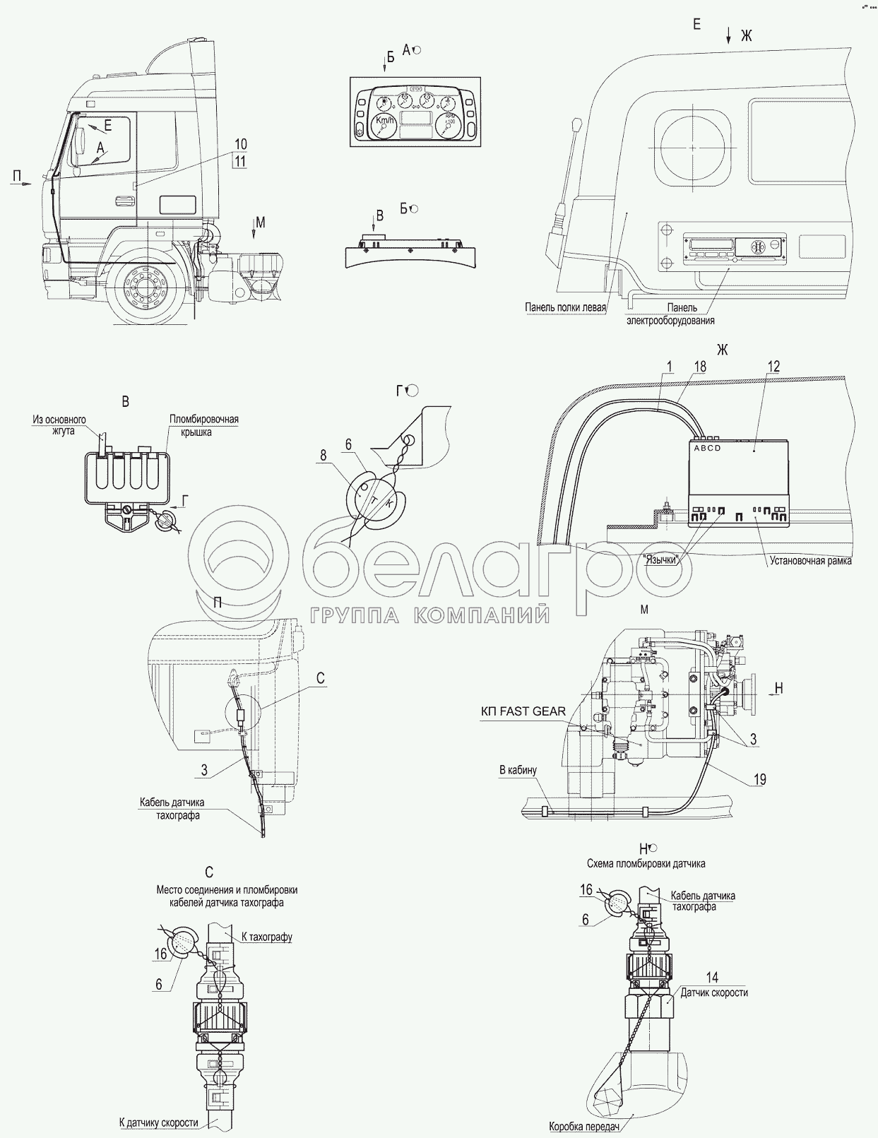 Каталог запасных частей к технике: МАЗ-6501B9. Установка и пломбировка тахографа 6516A9-3800005-020
