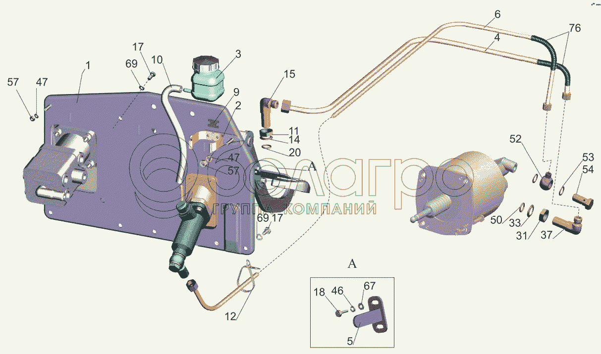 Каталог запасных частей к технике: МАЗ-6501B9. Установка механизма управления сцеплением 544022-1600005-001