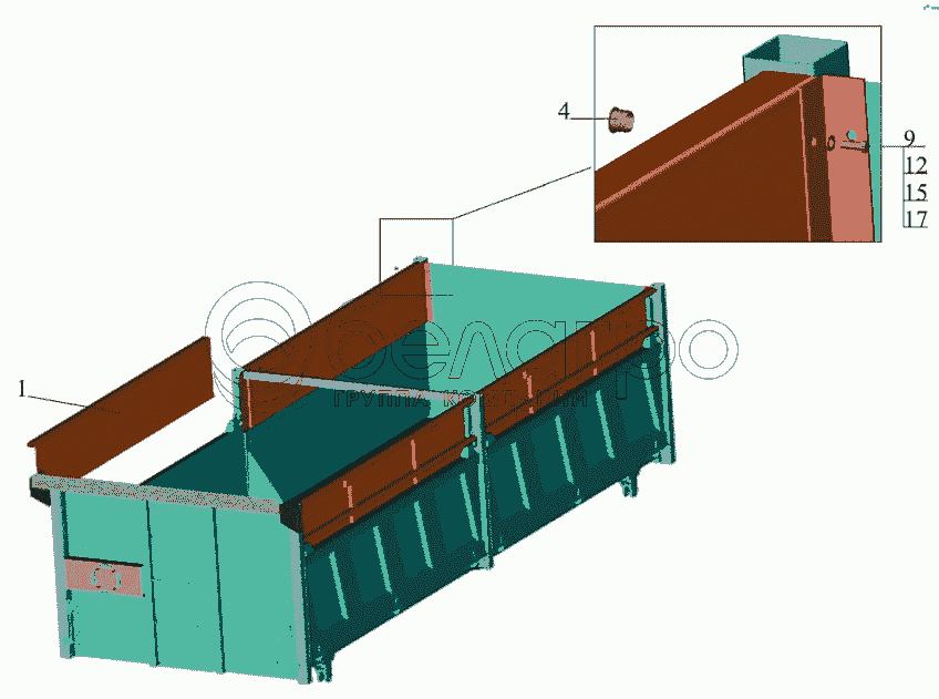 Каталог запасных частей к технике: МАЗ-6501B9. Установка надставных бортов 551608-8500012