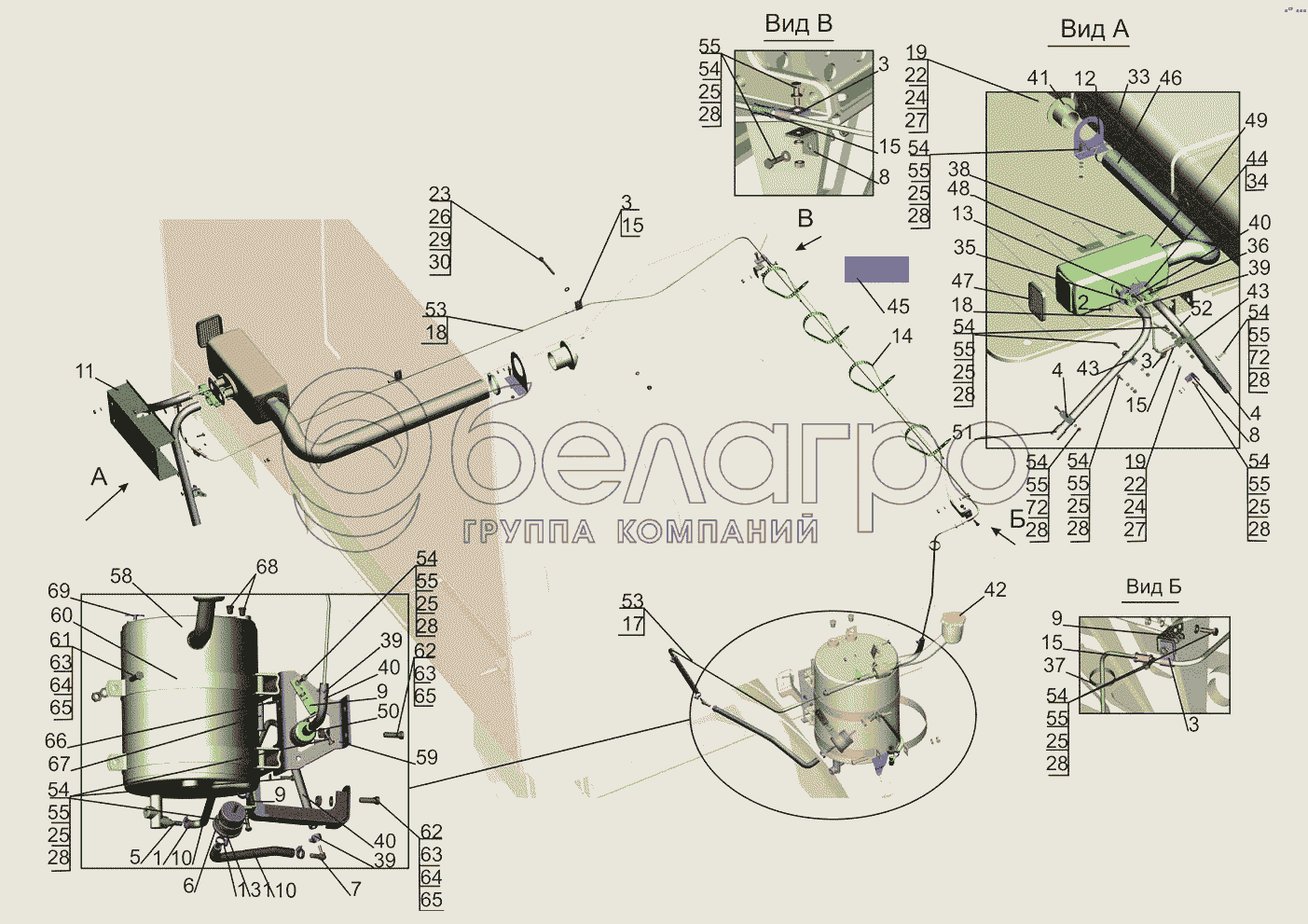Каталог запасных частей к технике: МАЗ-6501B9. Установка независимого воздушного отопителя 6501-8100002-011