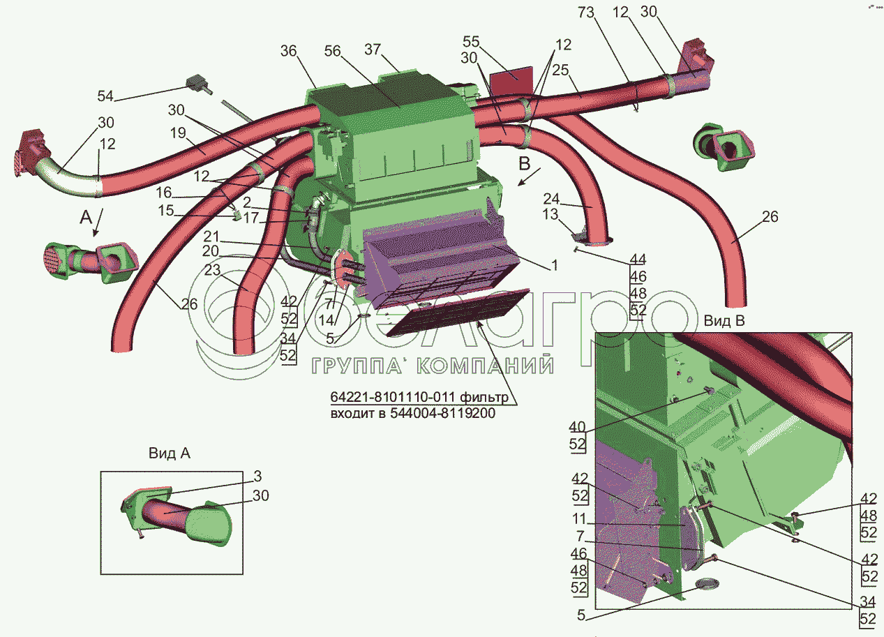 Каталог запасных частей к технике: МАЗ-6501B9. Установка отопителя 631019-8100001
