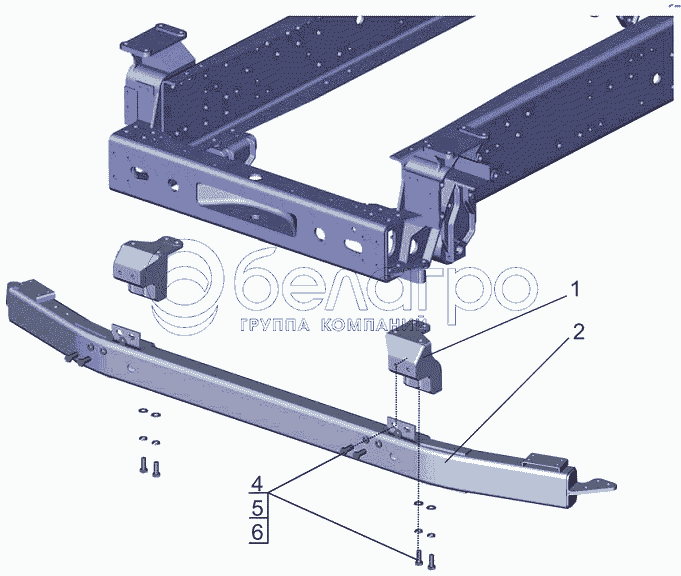 Каталог запасных частей к технике: МАЗ-6501B9. Установка переднего противоподкатного бруса 6430-2800030