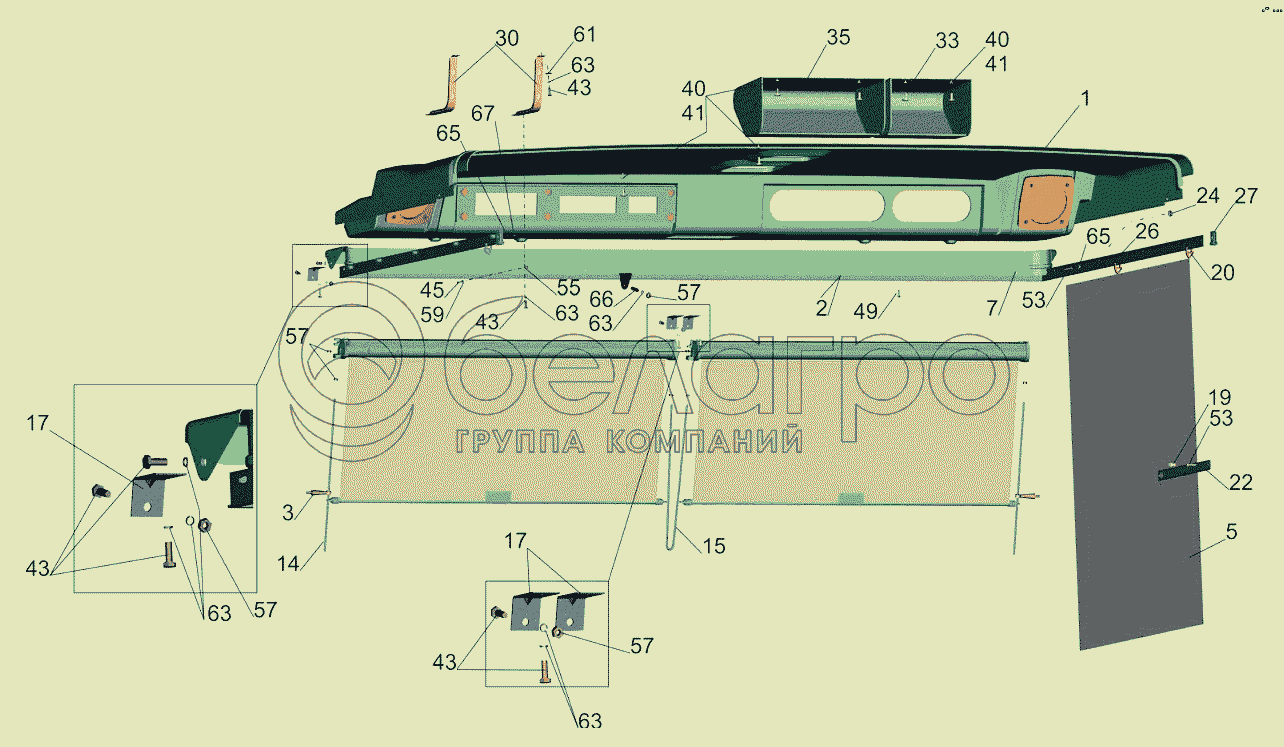 Каталог запасных частей к технике: МАЗ-6501B9. Установка полки и штор 6501-8200034