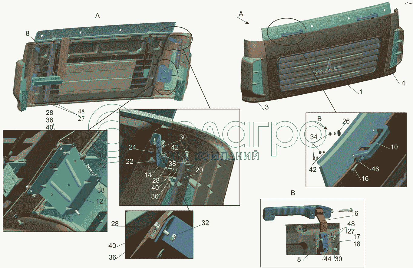 Каталог запасных частей к технике: МАЗ-6501B9. Установка щитков 6431-8400014-000