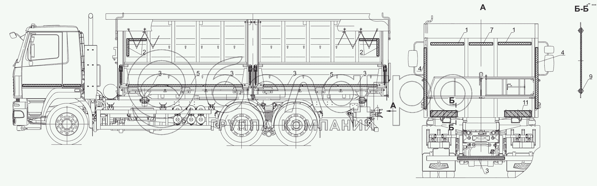 Каталог запасных частей к технике: МАЗ-6501B9. Установка светоотражающей маркировки 6501В9-8200002-000
