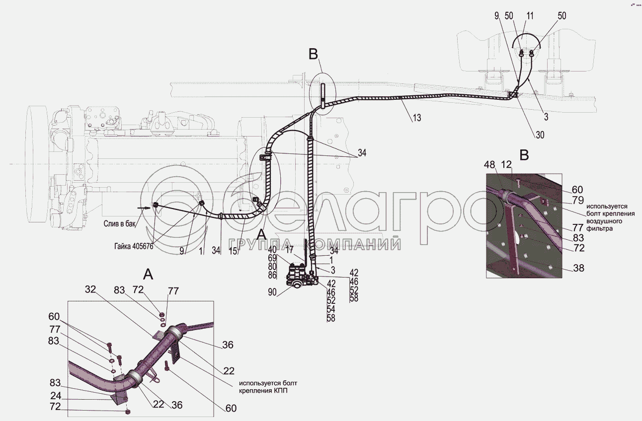Каталог запасных частей к технике: МАЗ-6501B9. Установка топливопроводов 6501B9-1104002-030