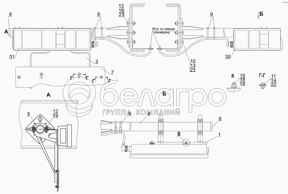 Каталог запасных частей к технике: МАЗ-6501B9. Установка задних фонарей 6501А5-3700009