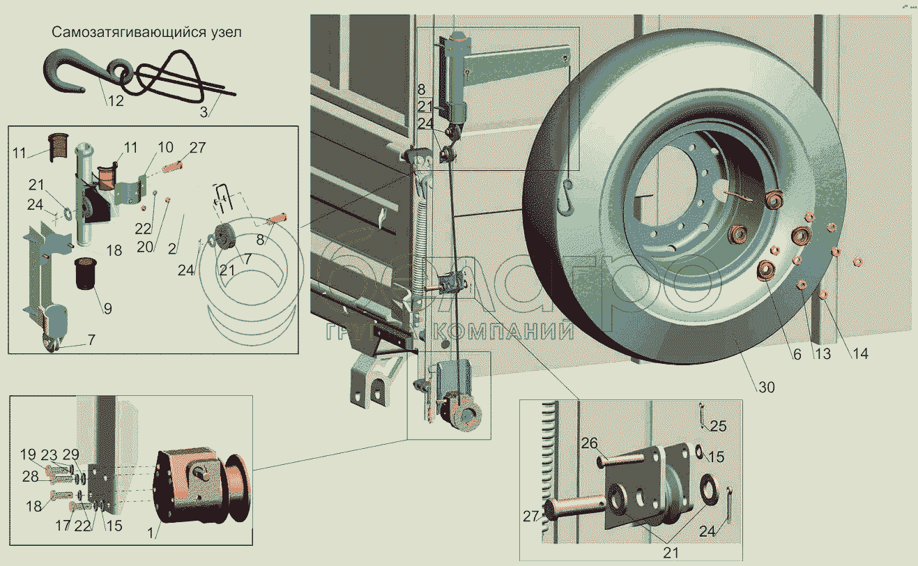 Каталог запасных частей к технике: МАЗ-6501B9. Установка запасного колеса