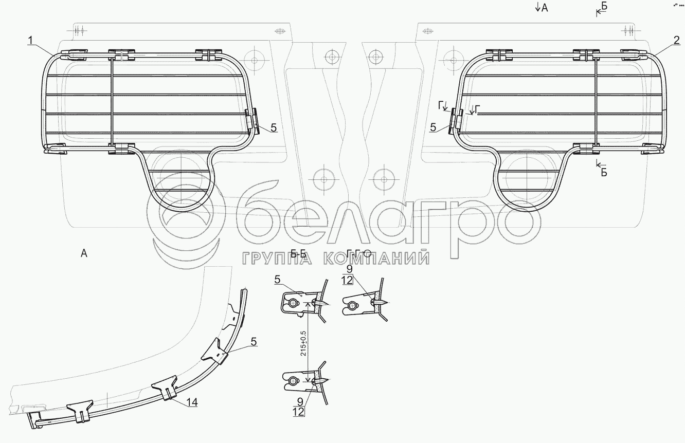 Каталог запасных частей к технике: МАЗ-6501B9. Установка защитной решетки 651669-3700174-000