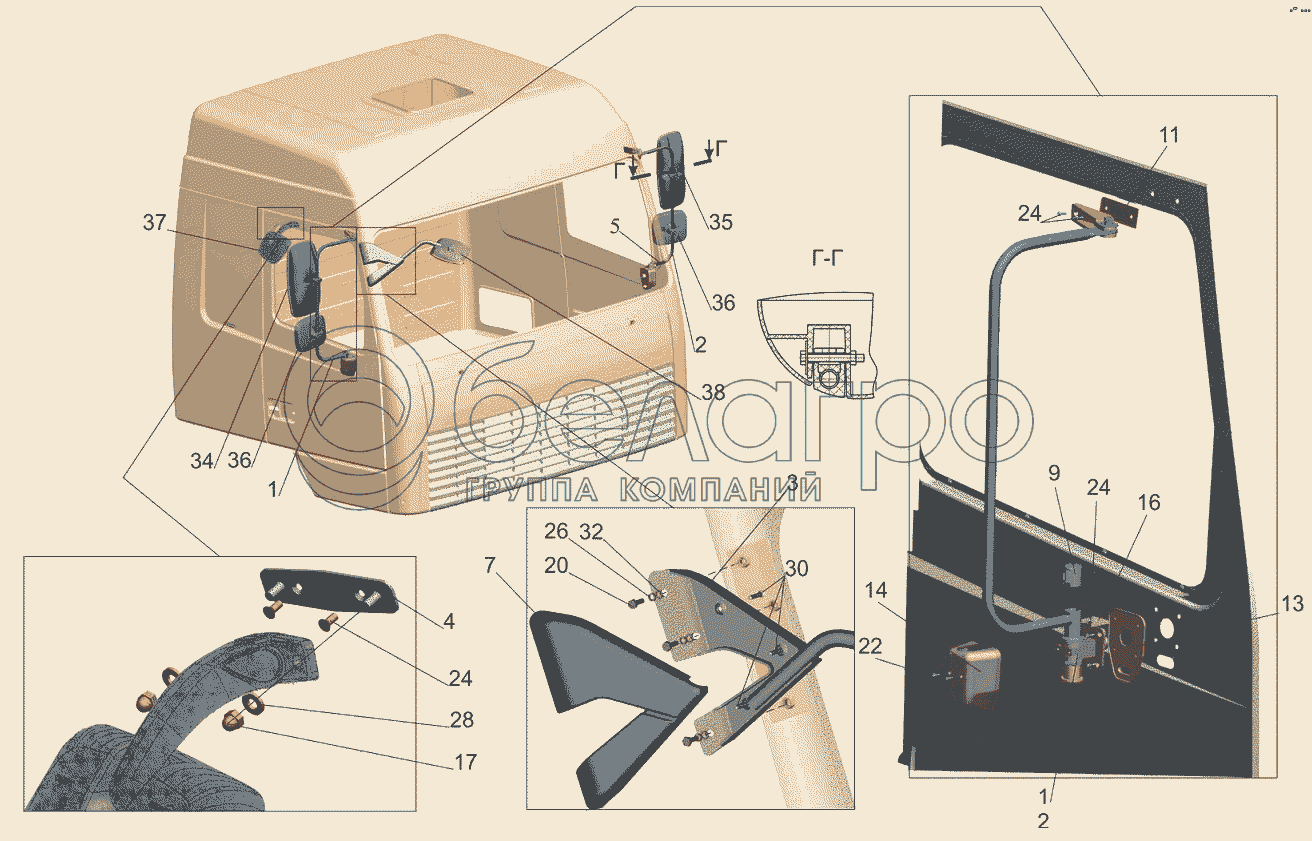 Каталог запасных частей к технике: МАЗ-6501B9. Установка зеркал 6430-8200005-020