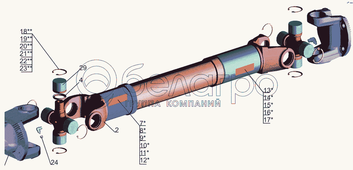 Каталог запасных частей к технике: МАЗ-6501B9. Вал карданный 54341-2201010-10