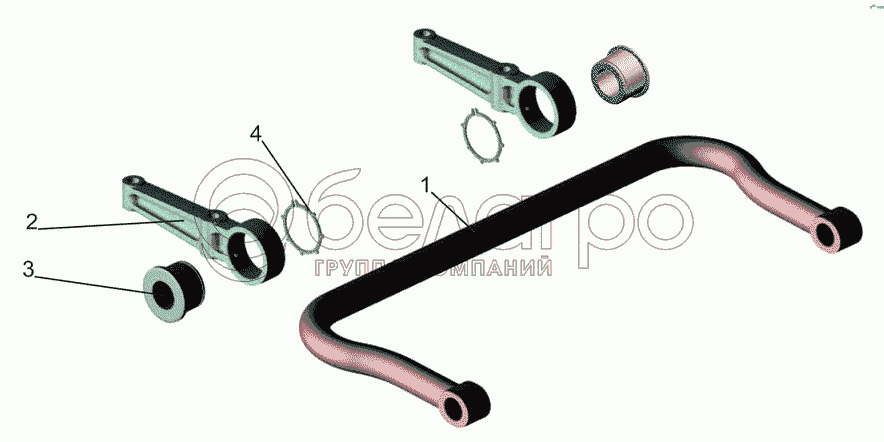 Каталог запасных частей к технике: МАЗ-6501B9. Вал стабилизатора с кронштейнами 6430-2916006