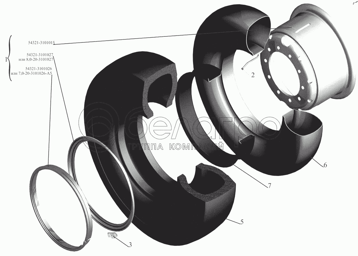 Каталог запасных частей к технике: МАЗ-6501B9. Колесо и шина 54321-3101011