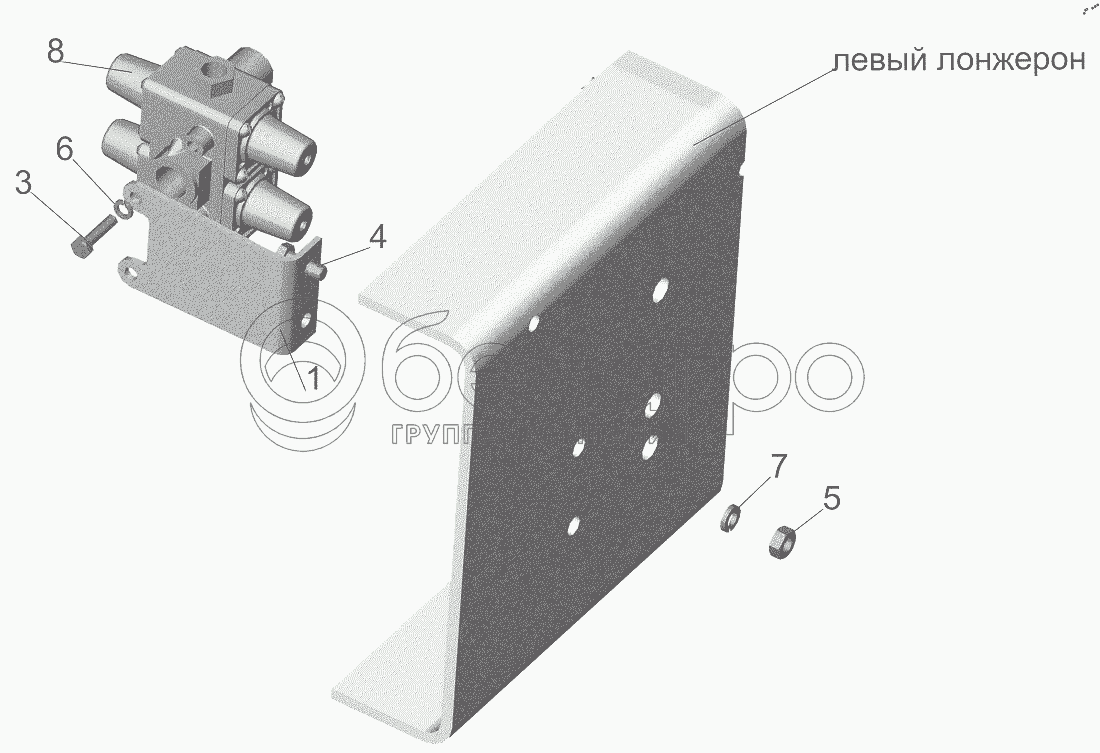 Каталог запасных частей к технике: МАЗ-6501B9. Крепление четырехконтурного клапана 650107-3515002