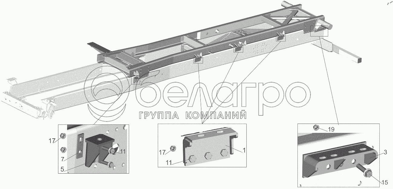 Каталог запасных частей к технике: МАЗ-6501B9. Крепление кронштейнов 6501B9-8600060-020