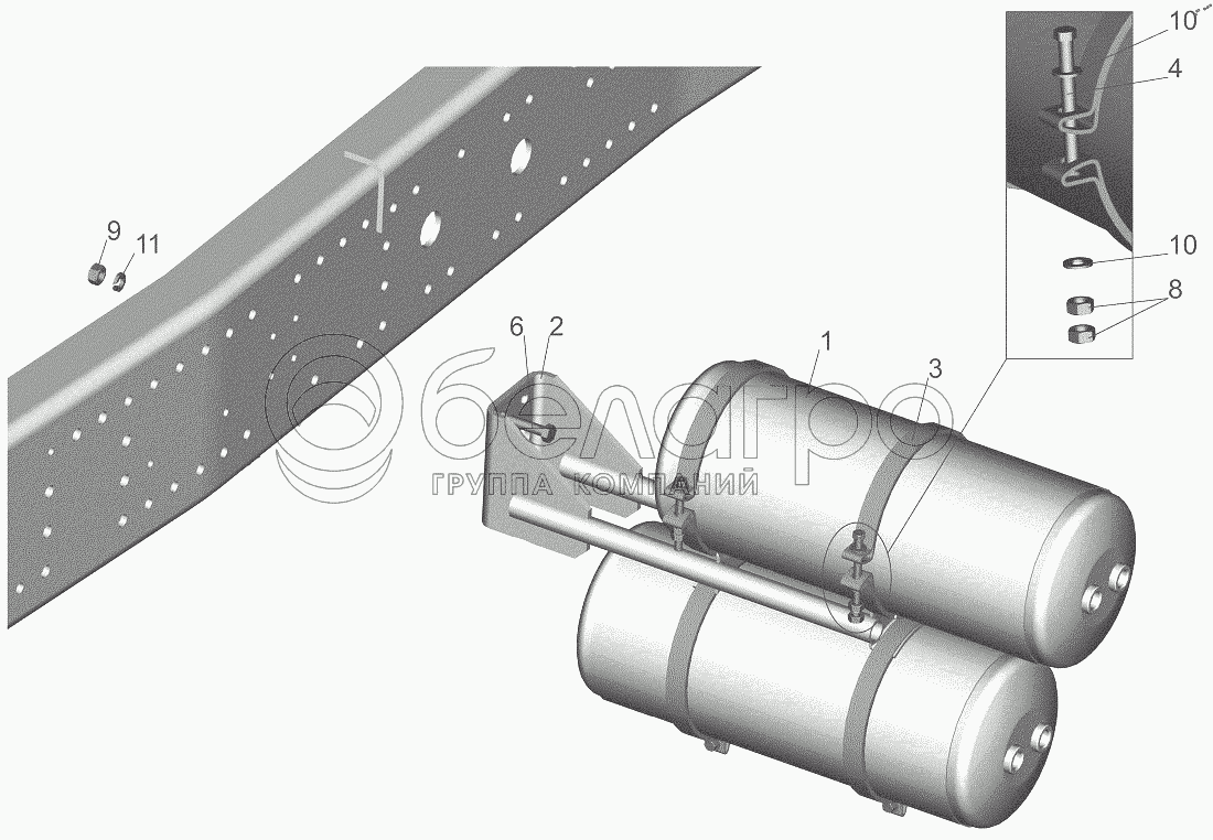 Каталог запасных частей к технике: МАЗ-6501B9. Крепление ресиверов 650119-3513006