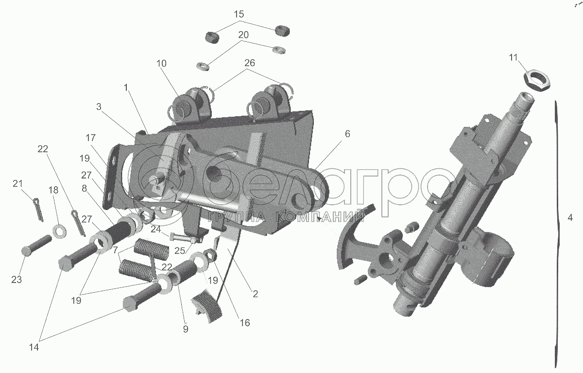 Каталог запасных частей к технике: МАЗ-6501B9. Кронштейн с колонкой 5440-3403008