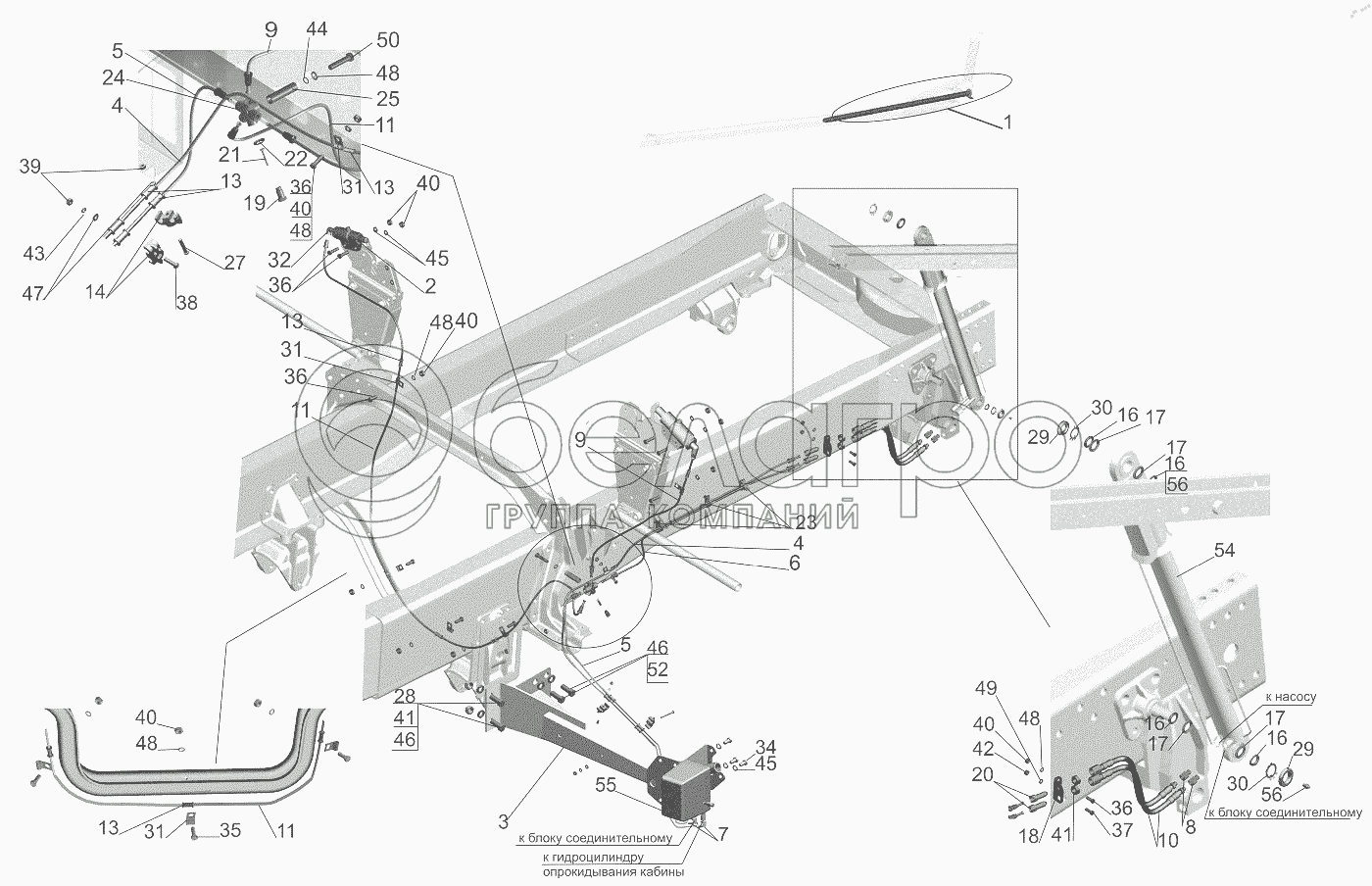 Каталог запасных частей к технике: МАЗ-6501B9. Механизм подъема кабины 6501B9-5000040-011