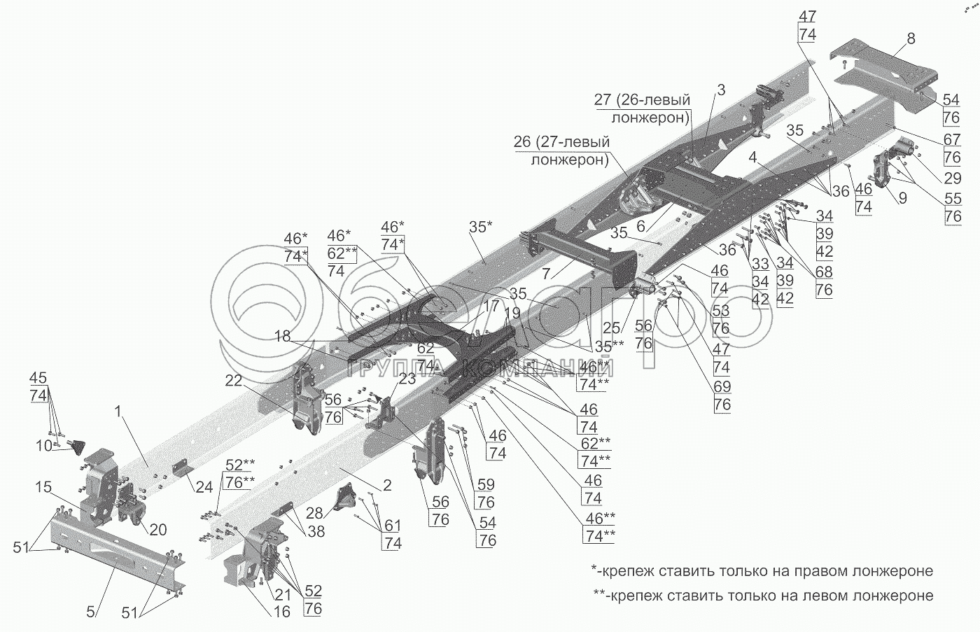 Каталог запасных частей к технике: МАЗ-6501B9. Рама 6501B9-2801002-040