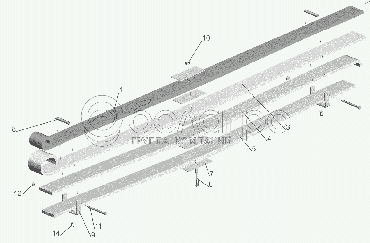 Каталог запасных частей к технике: МАЗ-6501B9. Рессора передняя 6312-2902012-000