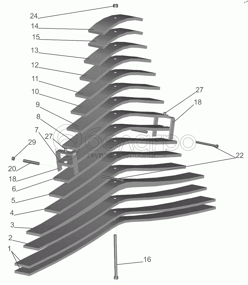 Каталог запасных частей к технике: МАЗ-6501B9. Рессора задняя 55165-2912012-010