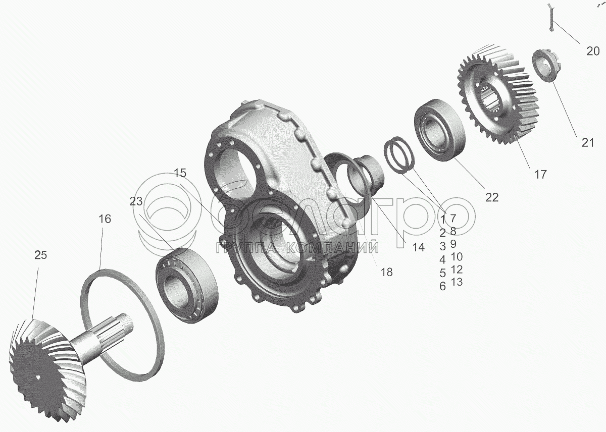 Каталог запасных частей к технике: МАЗ-6501B9. Шестерня ведущая