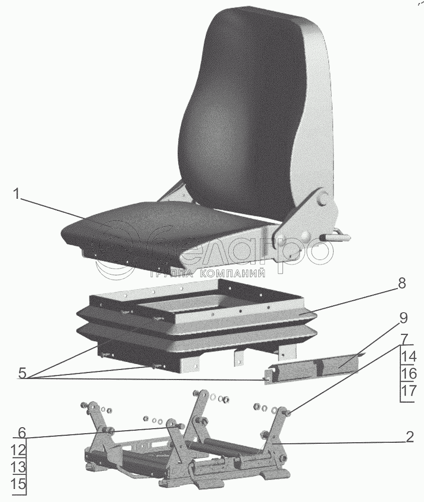 Каталог запасных частей к технике: МАЗ-6501B9. Сиденье водителя 6430-6800010