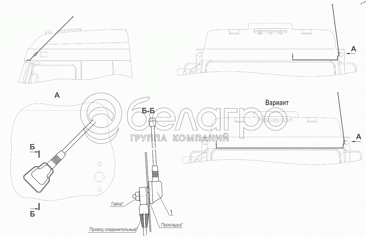 Каталог запасных частей к технике: МАЗ-6501B9. Установка антенны 6430-7900014